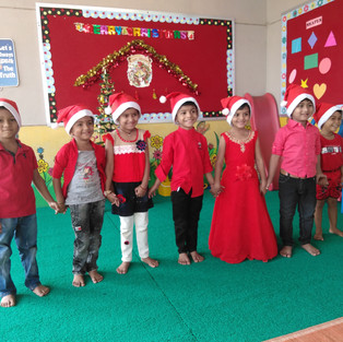 Christmas was celebrated on Tuesday, 24 December 2019. The pre- schoolers came to school dressed in red colour for Christmas . The day commenced with listening of Chrismas song “Jingle bells, Jingle bell jingle all the way”.